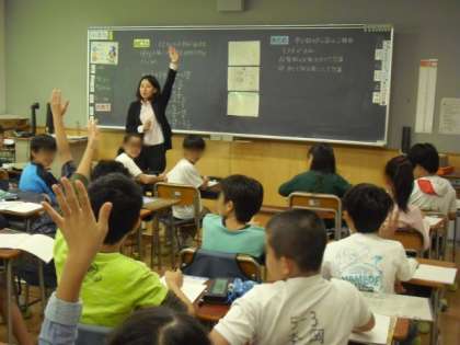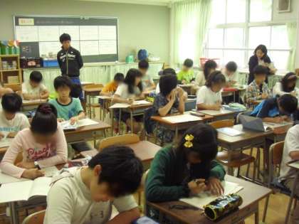 また、担当の先生も丁寧にノートの書き方を指導していました。ノートの書き方も校内研究の一部です。