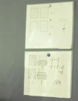 5年生の子どもたちは、ボードを使った学習に慣れてきています。校内研究でも算数の学習を進める際にボードに自分の考え書いて説明することを、一つの学習方法として定着させようと努めているところです。