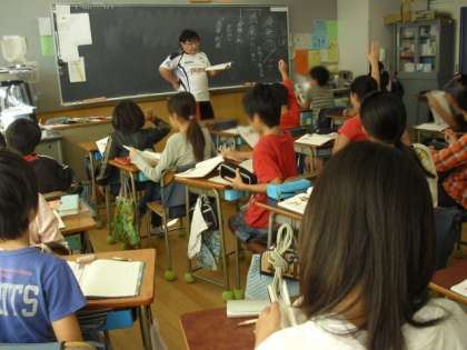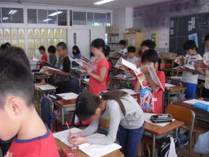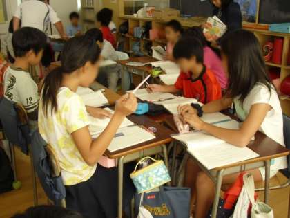 子どもたちは、担任の先生の質問から各自が考えたことをグループの中で話し合いました。