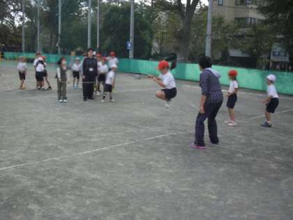 10月は、長なわ月間として、各クラスのお友達が心を合わせて長なわ跳びに挑戦してきました。今日は、10月2日、9日に続き3回目であり、最後でもありました。先週の木曜日が最後だったのですが、雨のため延期となっていました。