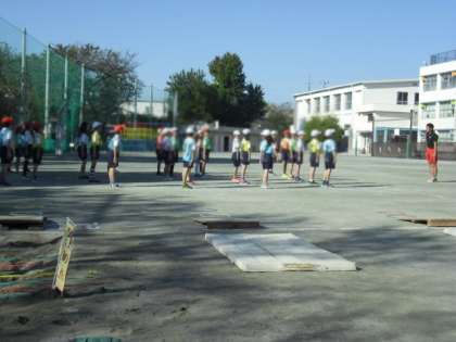 3年2組の1校時の学習は、体育「はばとび(走・跳の運動)」。教室訪問といっても、授業は校庭です。
