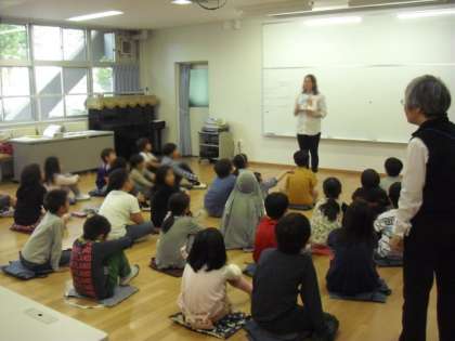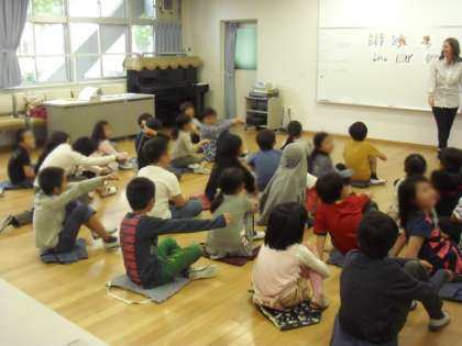教科でもよし、食べ物でもよし。子どもたちは、○○をALTのサム先生や英語ボランティアの方に教えていただきながら、グループごとにいろいろな○○で質問したり答えたりしていました。
