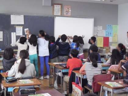 低・中学年の英語活動も高学年の外国語活動も、耳で聞いて話すことが学習の中心です。しかし、高学年になると、アルファベットや、簡単な英単語・英文に触れることが出てきます。