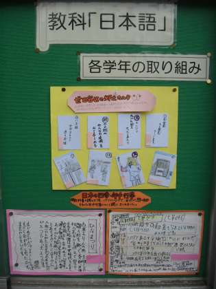 正門脇と南門脇にある11月の掲示板は、3年生が教科「日本語」で学習したことを掲示しています。学校の近くを通った時には、ぜひ掲示板をご覧ください。
