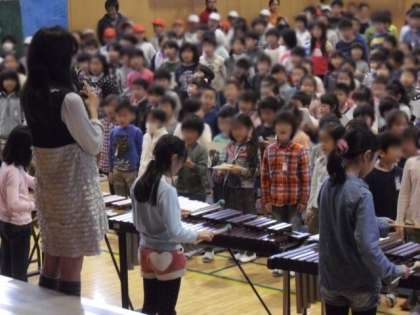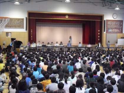 毎朝校内に流れる曲に合わせて口ずさんでいるお友達も大勢いた「やさしさに包まれたなら」。合奏クラブのお友達が、リードボーカルと伴奏をしました。とてもすてきでした。やさしい歌声と楽器の音色で体育館がいっぱいになりました。