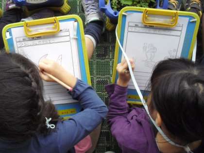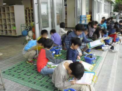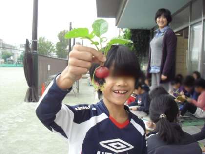 生活科で、野菜の栽培に取り組んでいる2年生が、ラディッシュの観察をしていました。「葉っぱが、虫にたくさん食べられちゃった」と言っているお友達もいました。しかし、それはおいしい証拠でもありますよ!!