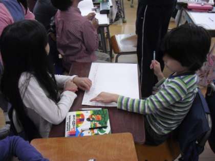 2年生のお友達が5時間目の学習で、教科「日本語」の百人一首、生活科の「おもちゃづくり」や「町たんけん」の発表準備に取り組んでいました。学芸会だけでなく、学習にもしっかりと取り組んでいます。