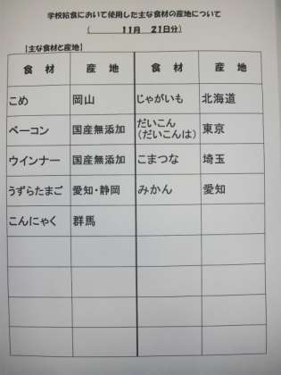 11/21 今日の給食