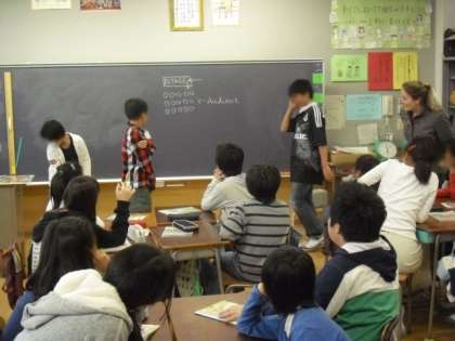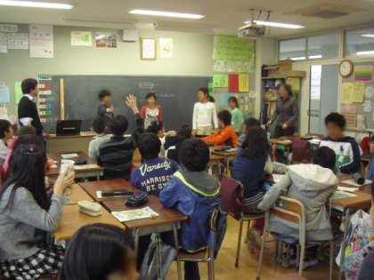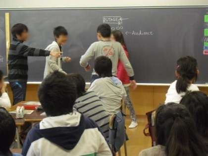 6年生は、外国語活動で劇づくりに挑戦します。今日は、そのための準備の意味も込めて「ジェスチャーゲーム」に挑戦しました。4人一組で相談しスポーツを中心に動作で表しました。恥ずかしさがありますが、だんだんと動きが大きくなっていきました。