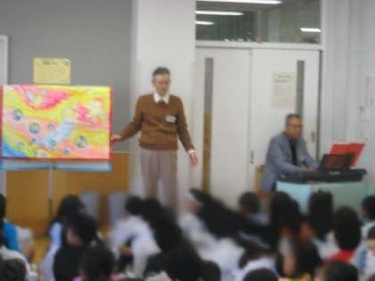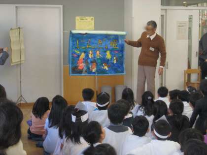 その後、代表の鈴木さんと高橋さんによる感動的な大型紙芝居を見たり、「ふじさん」や「ふるさと」の歌を一緒に歌ったりしました。