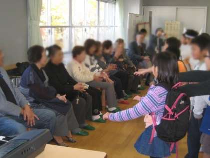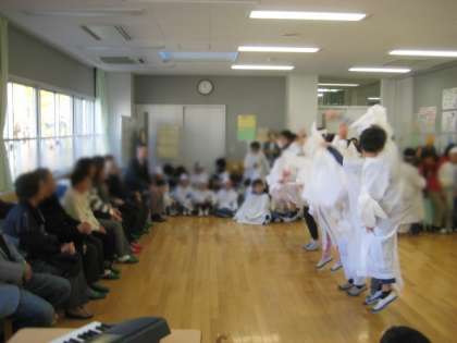 はじめは3年生から、学芸会での劇「ヒュードロン お化け学校」を披露しました。すずかけサロンの皆さんの温かい笑顔や拍手で、子どもたちも思い切り演技をすることができました。皆さんにも楽しんでいただくことができました。