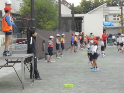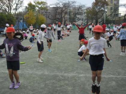 まずは、準備運動代わりに全員で「リズムなわ跳び」をしました。