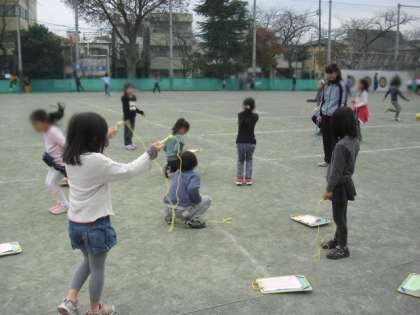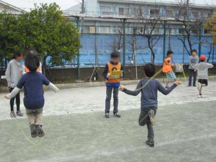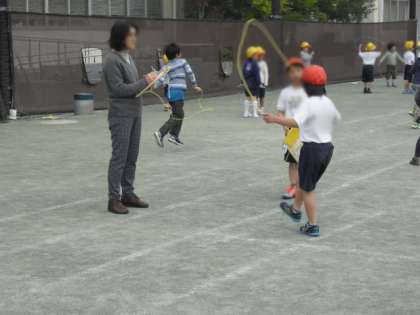 体育朝会での運動委員からの呼びかけもあり、短なわ跳びをしているお友達が大勢いました。運動委員に検定をしてもらっているお友達や、担任の先生と練習するお友達。そして1・2年生の各クラス週2時間ずつ、算数の指導を担任と一緒にしてくださっている(TT)講師の三宅先生に検定をしていただいているお友達もいました。みんな頑張っていました。