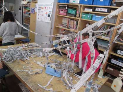 「ながーい紙、つくって」の授業の様子も今回で3回目のご報告となります。