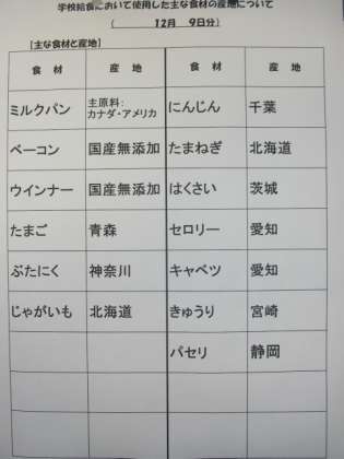 12/9 今日の給食