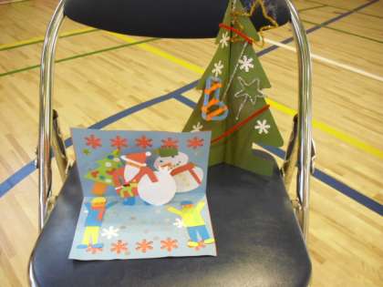 今日は、おやじの会主催の工作教室がありました。体育館で「クリスマスツリー」「クリスマスカード」「プラバン」「モールとビーズ」「割り箸鉄砲」を作ります。