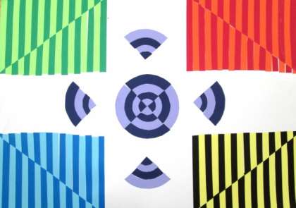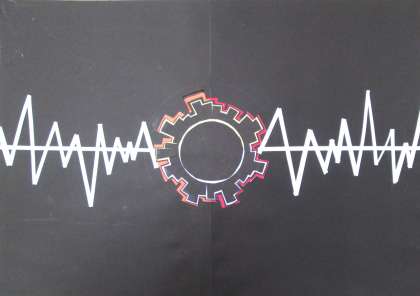 リズムを音楽や時間、色の変化、波形などに捉えかえして、動きや時間を考えさせるような作品も見られます。見ごたえのある作品になりました。