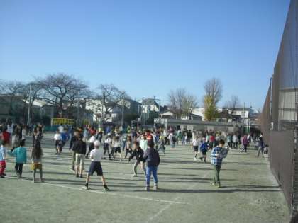 ひがしタイムは、1〜6年生までのお友達が、縦割り班ごとに仲良く遊ぶ時間です。各班の6年生がリーダーとして事前に遊びを決めておき、下学年のお友達が楽しく遊べるように頑張っています。