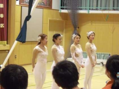 最後には、全員で記念写真撮影を行い、とてもよい思い出ができました。ご多用の折に、東深沢小学校で演技を披露してくださったエアリージャパンの皆様、本当にありがとうございました。そして、最後になりましたがPTA会長をはじめとする、準備に関わってくださった皆様、音響でお手伝いしてくださった音楽支援コーディネーターの高山さんに感謝いたします。ありがとうございました。