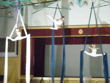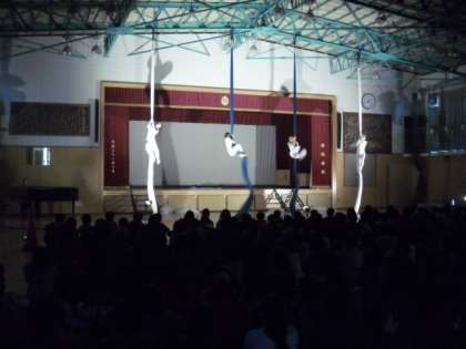 「アナと雪の女王」の音楽が鳴り、演技が始まります。とても迫力があり、そして美しい演技に誰もが目を輝かせ、集中して見ています。勢いよく上から落ちてくる時には、誰もが息をのみました。そのくらい、たくさんの観客が一体となってエアリージャパンの世界に引き込まれていました。