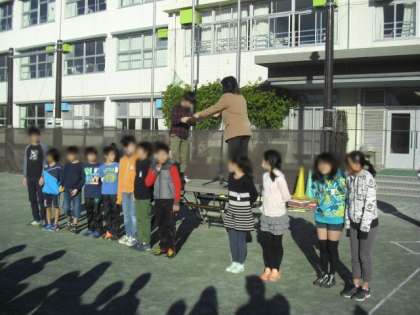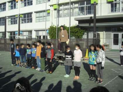 校長先生のお話の後は、昨日行われた「第4回世田谷子ども駅伝」の表彰を行いました。男子は5位入賞を果たしました。それは男女13人のお友達が一緒になって全力を尽くして練習をしてきた成果です。みんなが力を伸ばすことができ、とてもうれしいです。