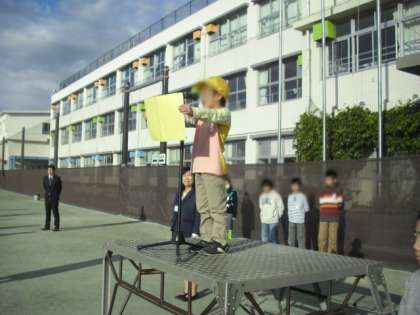 終業式は、まず校長先生です。2学期の学習や生活、学芸会などを通して、子どもたちが、努力することや協力することの大切さを学んだことについてお話がありました。