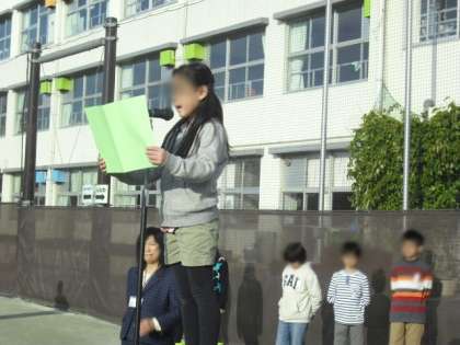 次に、児童代表として1・3・5年生のお友達が2学期に頑張ったことや3学期の目標について話しました。3人ともしっかりと自分自身やお友達のことを分かりやすく話すことができました。