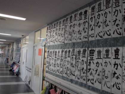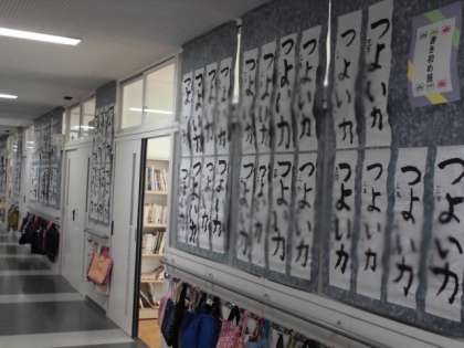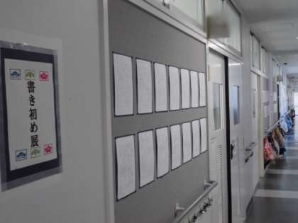 学校公開に合わせ、書き初め展を始めました。各教室の前に力作を掲示してあります。