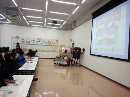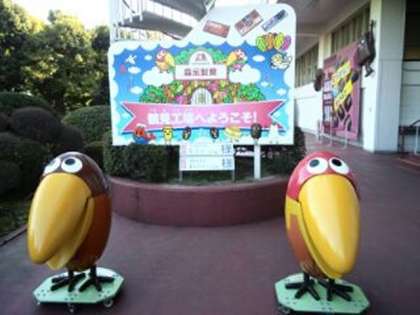 7時50分頃バスに乗り社会科見学に出発した5年生は、最初の見学場所の森永製菓鶴見工場に着きました。キョロちゃんがお出迎えをしてくれました。