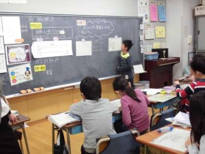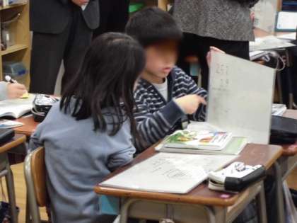 今日は、担当の先生の研修も兼ねていたので、近隣の学校の副校長先生6人も授業を参観させてもらいました。副校長先生方は、「身近なもの(給食)を問題に使っていたので、子どもたちの意欲が高まった。」「子どもたちが手際よく作業を進めていた」などとほめてくださっていました。