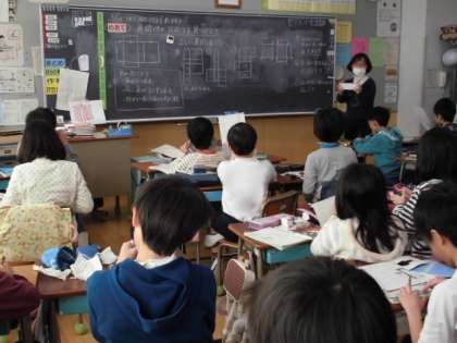 直方体の箱を作るための展開図は、1種類ではありません。4年生の子どもたちが、面や辺のつながり方を考えながら、いろいろな展開図をかき、直方体をつくっていきました。大きさも変えて楽しんでいました。何種類考えられたでしょうか。立方体も楽しみです。