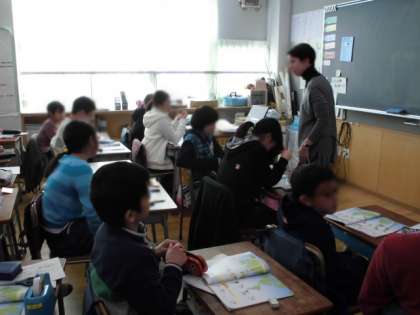 担任の先生と英語活動支援員の Nora(ノーラ)先生のティームティーチング(TT)で学習を進めました。
