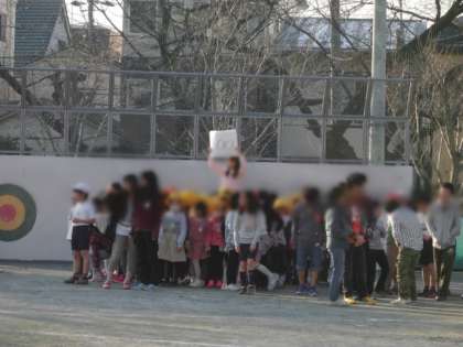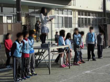 今日の集会は、「サークルクイズおに」。集会委員が考えたゲームです。