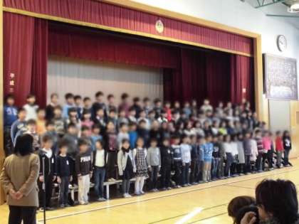二十歳の半分、十歳になった4年生が、2分の1成人式を行いました。式は、2部構成でした。まずは第1部です。体育館で全員一緒にこれまでの成長を振り返りました。そして第2部です。各教室で、一人ひとりがこれまで育てていただいた感謝の気持ちや、今後の夢などを発表しました。おうちの方々も大勢参加して見守ってくださいました。