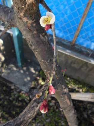 昨年は2月5日開花した「白梅」が、今日開花しました。それだけこの冬は、寒さが厳しかったのでしょう。