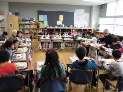来年もぜひ、紙芝居をしていただき、給食を味わっていただきながら子どもたちと一緒に楽しんでいただければと思います。地域の皆様、ありがとうございました。