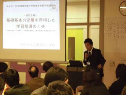 東深沢中学校において、東深沢中学校、等々力小学校、東深沢小学校の3校が、今年度みしまの森学舎として進めてきた取り組みの報告会を行いました。この会には、地域や保護者の方々も参加してくださいました。