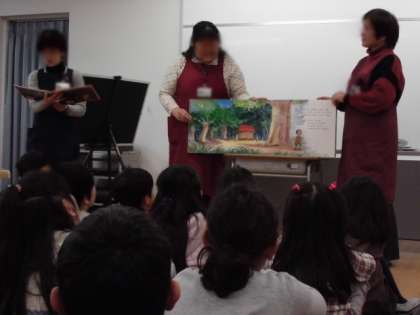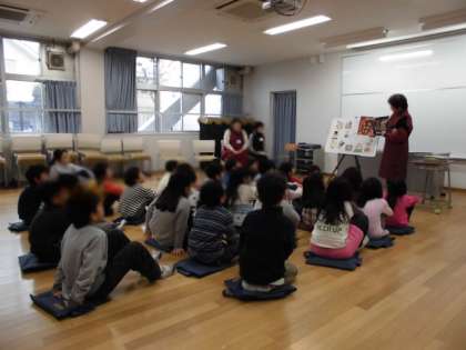 深沢図書館の方々がひがしにいらしてくださり、2校時と3校時に2年生の2クラスにおはなし会を開いてくださいました。