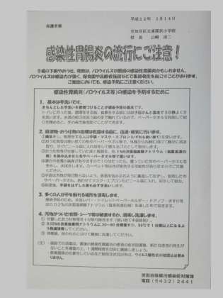 配布文書の「学校便り」に同じ文書を掲載してあります。