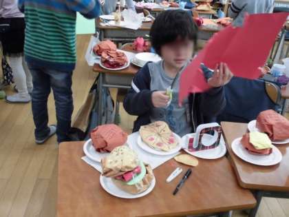 アメリカンサイズのハンバーガーを作ったり、焼きたてのようにふっくらしたピザを作ったりとたくさんのごちそうができ上がりました。