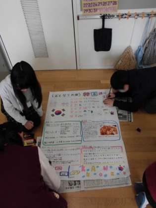 6年生は、日本と、興味・関心をもった国の歴史的なつながりや暮らし、文化、自然などについて調べ、まとめています。