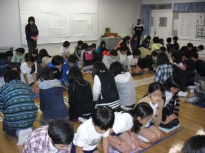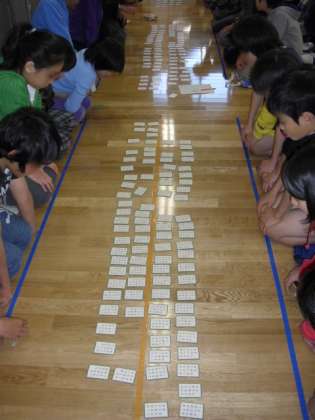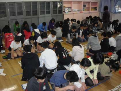 6年生は、学年で百人一首大会です。この大会を実施するために、実行委員の人たちが、昨年から準備を進めていました。対戦表や、会場図、教室のライン引き、司会やあいさつすべてが実行委員です。