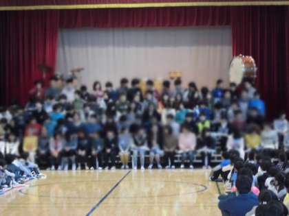 6年生が入場した後は、始めの言葉、校長先生のお話、そして6年生クイズです。「漢字を一番多く習うのは何年でしょう?」など問題も様々。6年生へインタビューもしました。