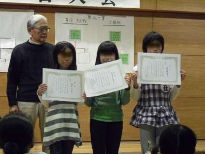 犬ぼうカルタは、優勝・準優勝ともにひがしの3年生のチームがとりました。決勝戦は、同じ学校同士の戦いで今までより、やりにくかったようですが、両チームともによくがんばりました。