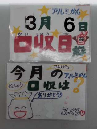 明日3月6日(金)の朝は、今年度最後のアルミ缶回収日です。アルミ缶の回収の収益金は、バングラデシュの子どもたちのために使われています。ご協力をよろしくお願いします。