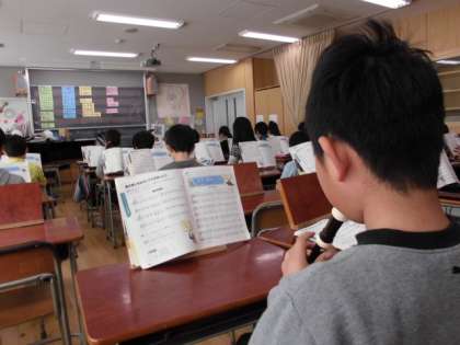 「オーラリー」はリコーダーの合奏、「茶色の小びん」「冬の歌」は、様々な楽器を使った合奏です。自分が選んだ楽器ですから、さらにやる気も高まっています。
