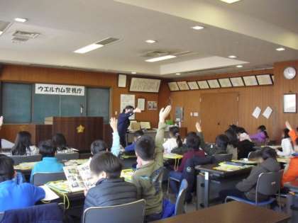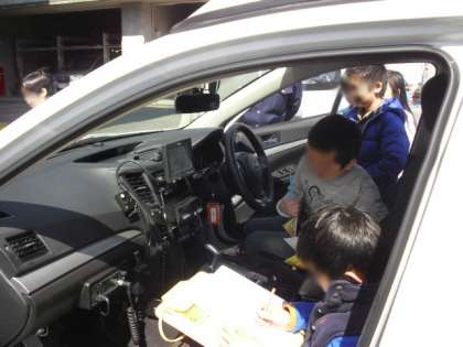 3年生の2クラスで、警察署見学に行きました。他の2クラスは、先日見学を行いました。今日は、警察署の仕事の内容を教えてもらったり、パトカーに乗らせてもらったりしました。また、「1秒にどれくらい進むのか」を考えました。1.走っているとき、2.自転車に乗っているとき、3.車に乗っているときの、実際に進む距離を具体的に教えてもらいました。車の運転手さんが「あっ!」と思ってブレーキを踏んでも、車が止まるまでに約11mも進むことを知りました。こうした事故を未然に防ぐために、子どもたちは周りをよく見て、交通安全に気を付けて生活することを、改めて意識していました。学校に帰ってから、警察署見学のまとめをしました。お土産には、反射材をいただきました。ぜひご家庭で活用してください。子どもたちからのたくさんの質問に丁寧に答えてくださった玉川警察署の皆様、本当にありがとうございました。