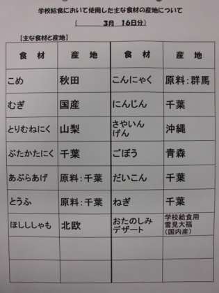 3/16 今日の給食