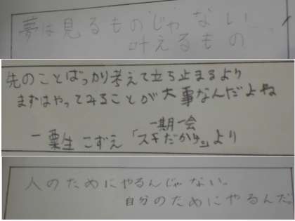 これまでに出会った言葉の中で、影響が大きく、自分の考えや思いが変えられてしまったような言葉についてまとめています。みんな一人ひとりがそういった言葉に出会っています。どれもすてきな言葉です。将来にも大きく影響することでしょう。