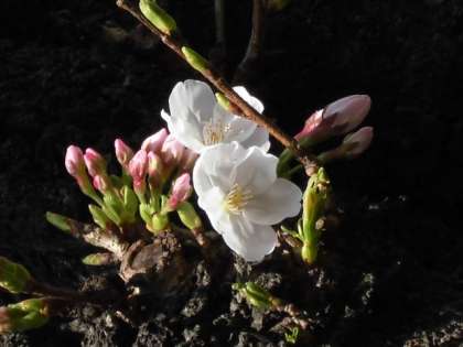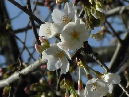 春の日差しがいっぱいの今日、緑道の桜が開花しました。桜が咲くと何となくうきうきした気分になります。